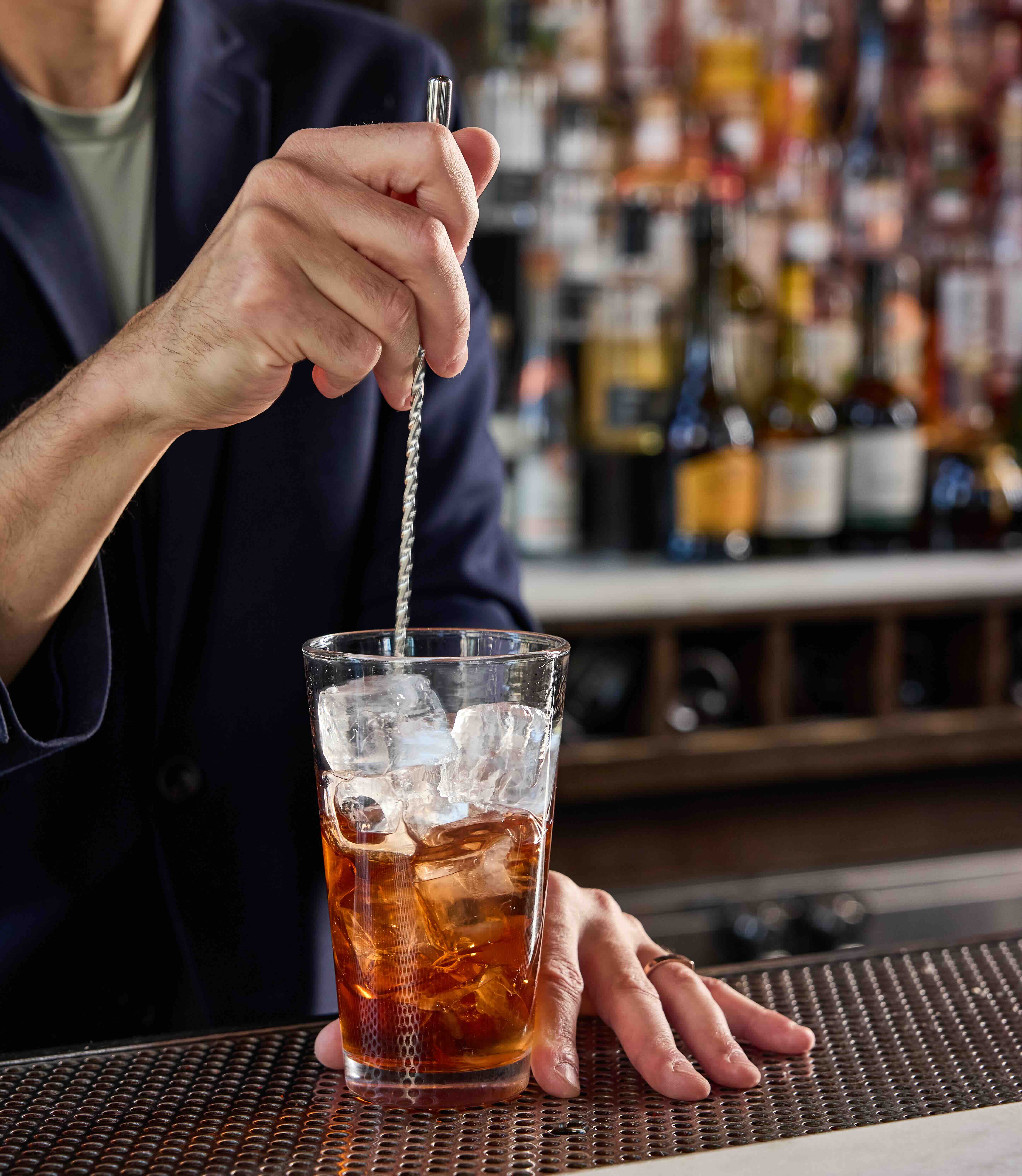 Stirring is the opposite—it's calm, controlled, and gentle. You're chilling and diluting ingredients without adding any air or texture. The result is crystal clear, silky, and spirit-forward. A properly stirred Martini or Old-Fashioned should look like liquid glass.